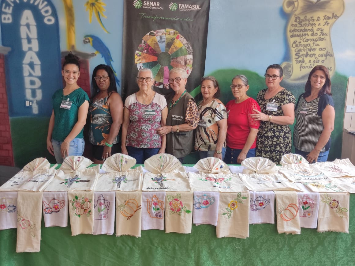 “Eu fiz o curso de bordado livre e abriu minha mente em relação a ter uma fonte de renda. Aqui em Anhanduí tem uma feira, e junto com as meninas que fizeram esse curso, estou me organizando para ter uma banca. Estamos muito animadas”, diz Camila Silva de Souza.
