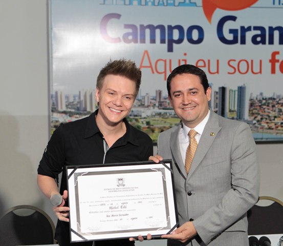 Na noite de ontem (26), aniversário de 113 anos da Capital sul-mato-grossense, o cantor sertanejo Michel Teló foi quem ganhou o presente, recebendo o título de cidadão sul-mato-grossense, em solenidade.