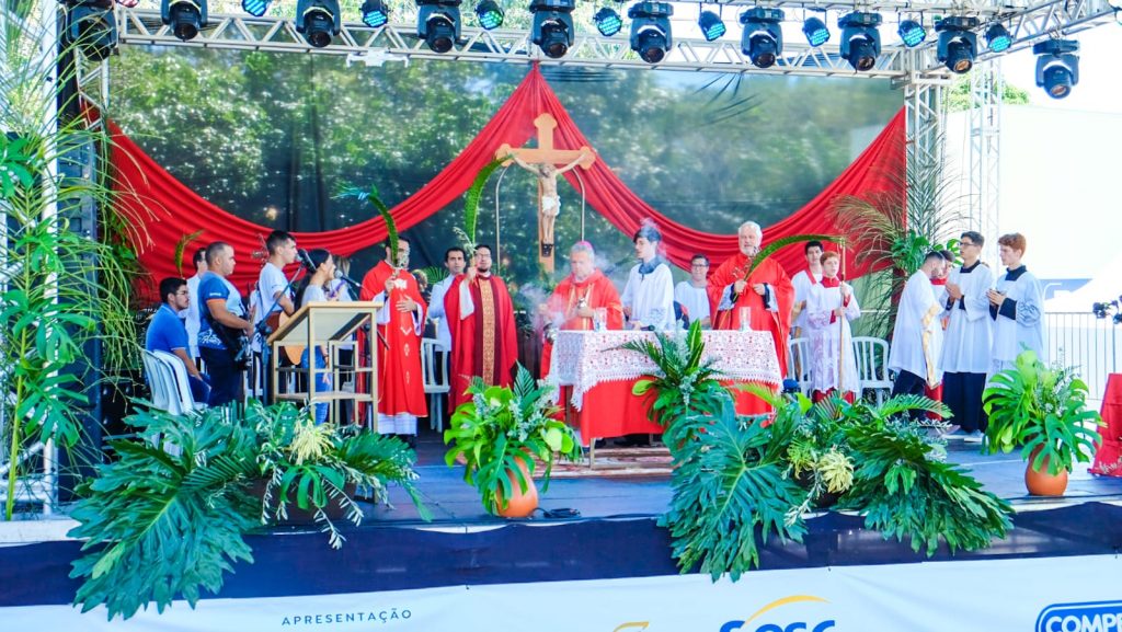 Os fiéis receberam os ramos na Paróquia Nossa Senhora da Abadia e desceram em procissão para a celebração da Missa na Cidade da Páscoa. Dom Dimas explica a importância da data para os cristãos. “Essa data marca a entrada de Jesus em Jerusalém, onde foi recebido sendo aclamado pelo povo, o mesmo povo que depois crucifica jesus, o nosso salvador”.