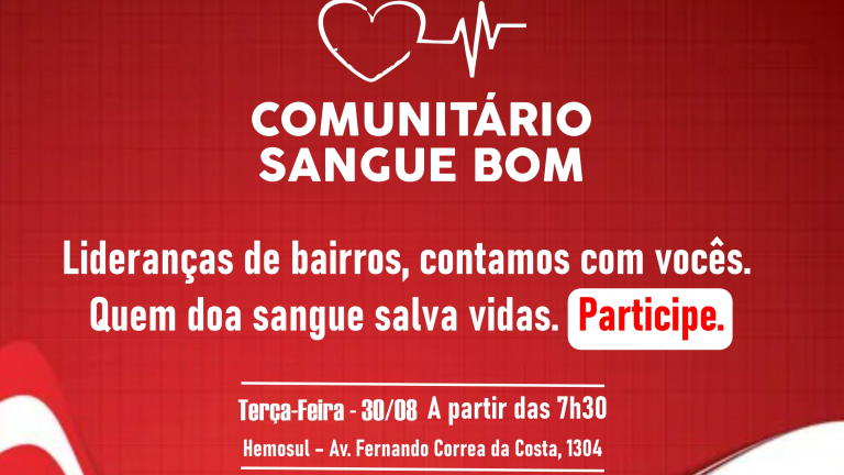O subsecretário, Chiquinho Telles, explica que a ação começa agora, mas não tem data para terminar. “Doar sangue salva vidas. Campo Grande tem mais de 1 mil associações de moradores, clubes de mães e centros comunitários que podem se tornar voluntários doadores de sangue. É uma atitude de solidariedade e amor ao próximo, por isso incentivamos que, quem puder, participe. Não somente nesta data em especial, mas em outras. Queremos que a doação de sangue seja um ato voluntário e constante na vida das pessoas”, enfatiza.