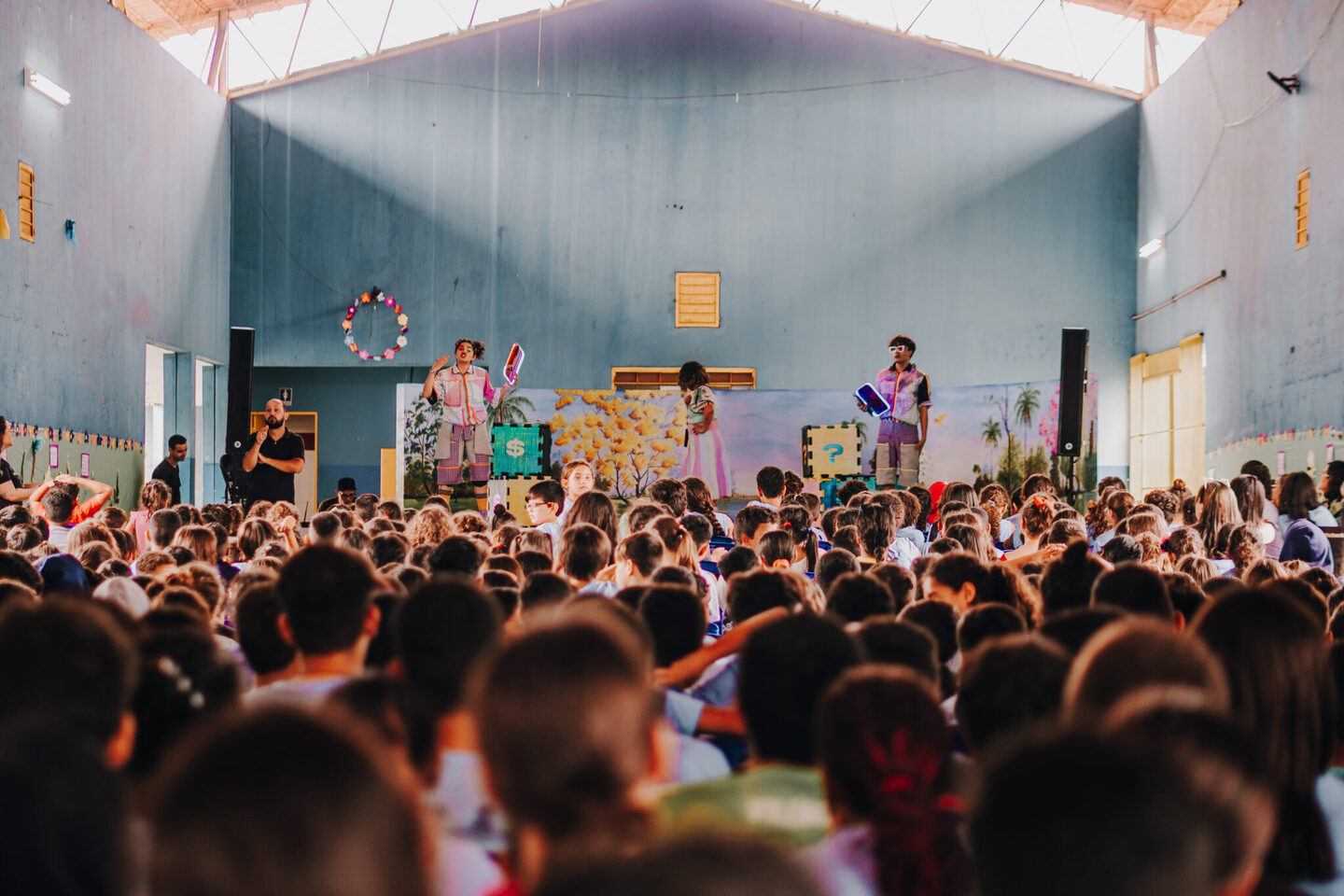 A apresentação em dois turnos ocorre nesta quarta-feira (1º), para alunos do grupo 5 até o 9º ano. Campo Grande é a segunda cidade na turnê da peça teatral “De onde vem o Dinheiro”, que fala sobre educação financeira de forma lúdica, para os alunos.