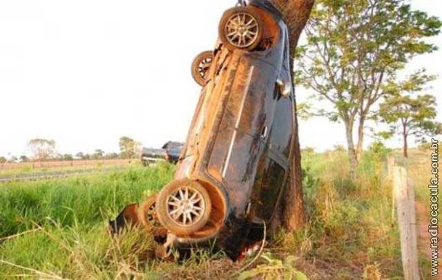 Um acidente ocorrido na madrugada deste domingo (18) na MS-306, a cerca de 40 km de Chapadão do Sul, deixou duas pessoas feridas e o veículo Fiat Punto, preto, placas MRJ-4629 de Campo Grande, sobre uma árvore.