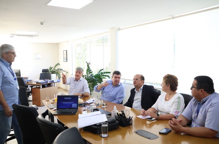 o governador Eduardo Riedel participou de uma reunião de trabalho com a diretoria da Sanesul (Empresa de Saneamento de Mato Grosso do Sul)