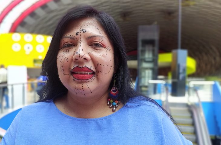 No caso dela, o grafismo estampado na face significa a comemoração da mulher indígena ocupando espaços.