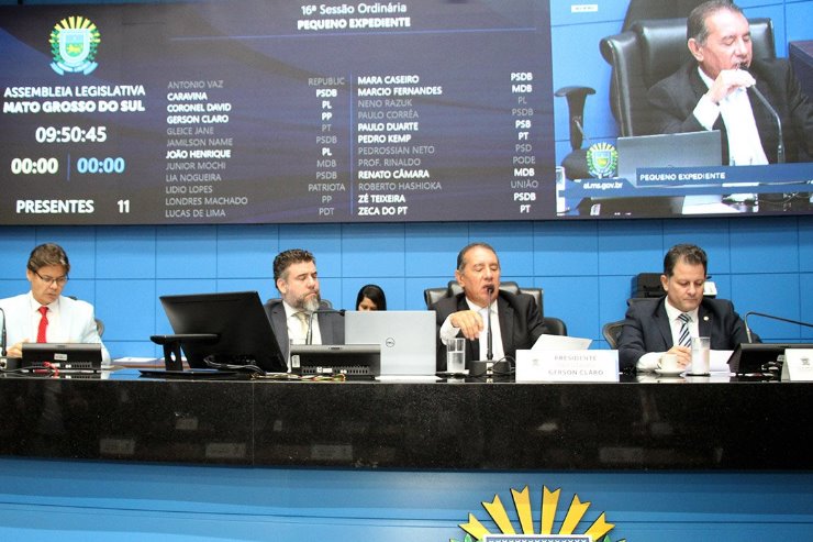 durante sessão ordinária na Assembleia Legislativa de Mato Grosso do Sul (ALEMS), três propostas, sendo uma em discussão única e duas em primeira discussão.