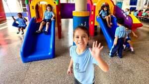 Alunos da REME comemoram a chegada dos novos parquinhos