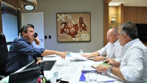 O governador Eduardo Riedel se reuniu nesta quarta-feira (24) com o prefeito de Ponta Porã, Eduardo Campos.