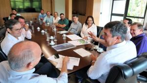 O governador Eduardo Riedel se reuniu nesta quinta-feira (21) com a prefeita de Laguna Carapã, Zenaide Espíndola e vereadores da cidade para reafirmar os compromissos e parceria do Estado com o município.