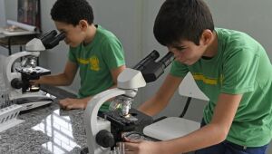 Olhos atentos e mãos treinadas para buscar conhecimento nos laboratórios de ciências, robótica e informática.