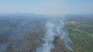 O Corpo de Bombeiros de Mato Grosso do Sul atua no controle e extinção de três incêndios florestais no Pantanal. No foco de maior proporção,
