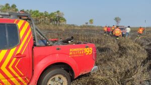 Equipes do Corpo de Bombeiros Militar de Mato Grosso do Sul atuam no combate a três incêndios florestais no Pantanal, nas regiões do Nabileque, Salobra e Paiaguás.