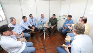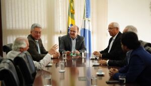 O governador de Mato Grosso do Sul, Eduardo Riedel, e o secretário de Estado de Meio Ambiente, Desenvolvimento, Ciência, Tecnologia e Inovação, Jaime Verruck, reuniram-se nessa terça-feira (23) com autoridades sanitárias e lideranças rurais