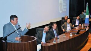O governador Eduardo Riedel participou nesta quarta-feira (10) da abertura do 1º Workshop "Construir Inteligência Gestora pelas Análises de Dados", realizado pela SES (Secretaria Estadual de Saúde).