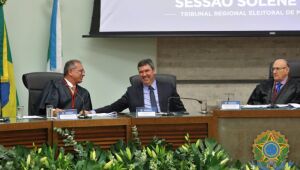 O governador Eduardo Riedel e o vice-governador José Carlos Barbosa, o Barbosinha, participaram nesta quinta-feira (4), da posse da nova administração do TRE-MS (Tribunal Regional Eleitoral de Mato Grosso do Sul),