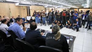 O governador Eduardo Riedel se reuniu no final da tarde desta segunda-feira (10) com o secretário de Educação, Hélio Daher, o adjunto da pasta, Edio Rezende, e com o secretário de Estado de Justiça e Segurança Pública, Antonio Carlos Videira,