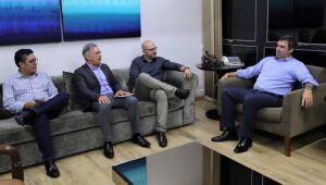O governador Eduardo Riedel se reuniu no final da tarde desta segunda-feira (10) com o secretário de Educação, Hélio Daher, o adjunto da pasta, Edio Rezende, e com o secretário de Estado de Justiça e Segurança Pública, Antonio Carlos Videira.
