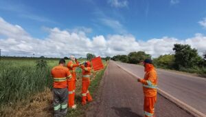 Em parceria com a PMA, ação usa até bonecos para salvar animais na principal rodovia do Pantanal